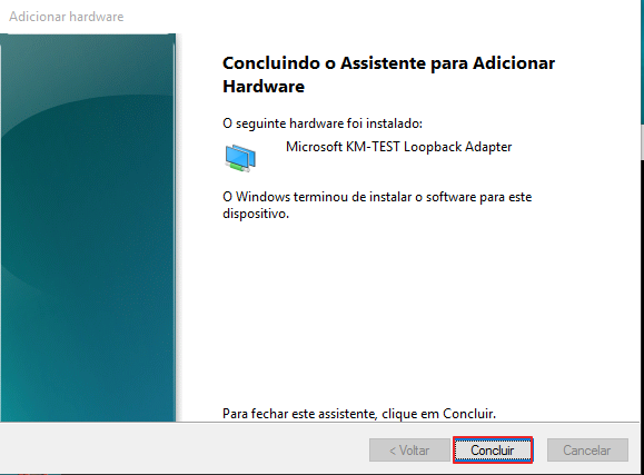 Concluído esses passos acima, pronto foi adicionado no Windows uma placa de rede Loopback (Virtual) para que o Hiper a reconheça como uma placa de rede e libere o frente de caixa.