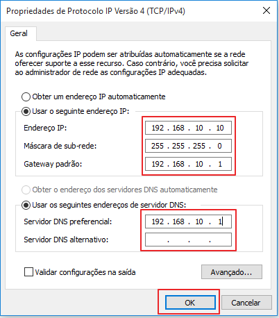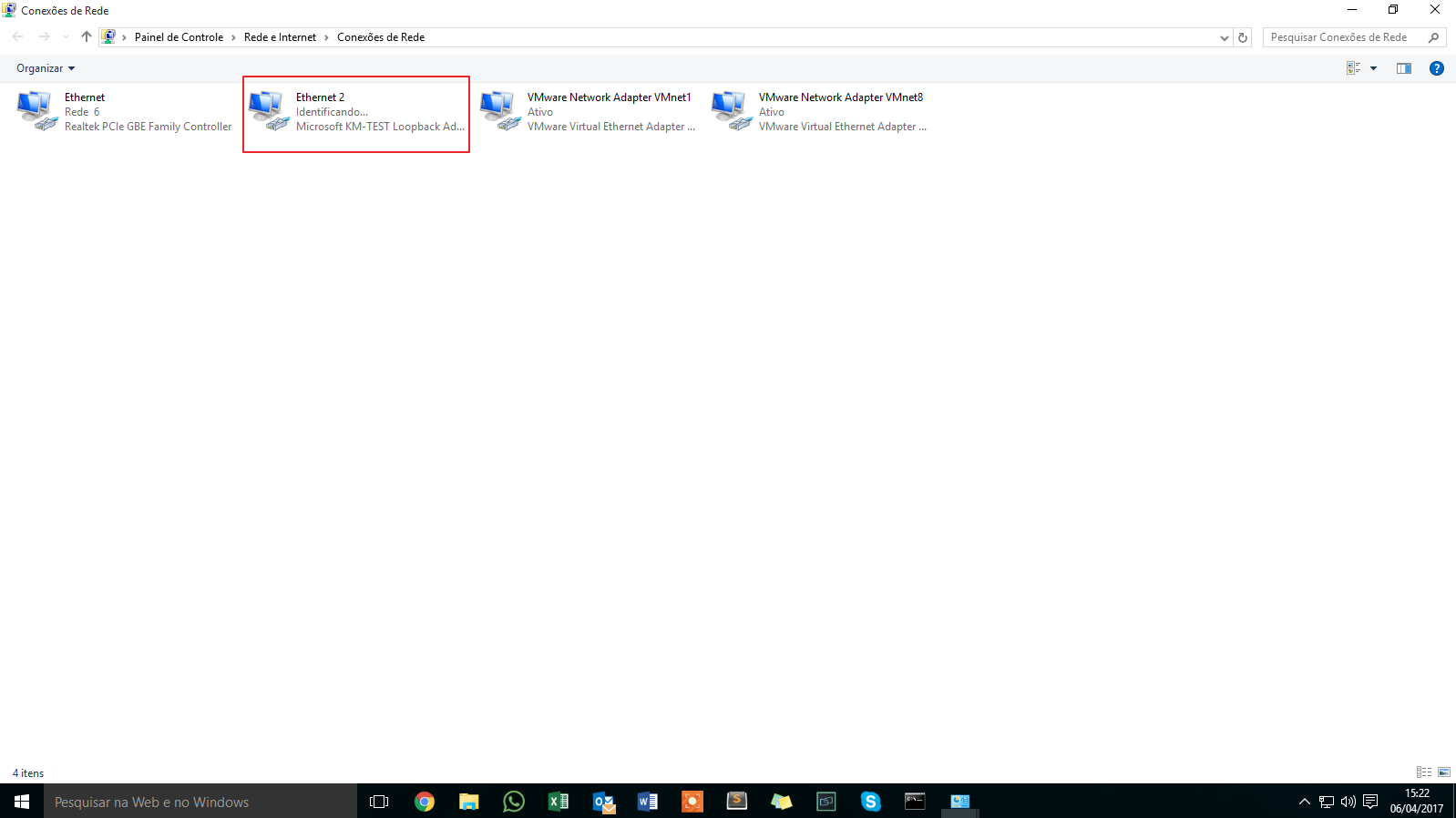 Para não ter erro é interessante definir qualquer IP válido pra essa placa conforme mostra nas imagens abaixo
