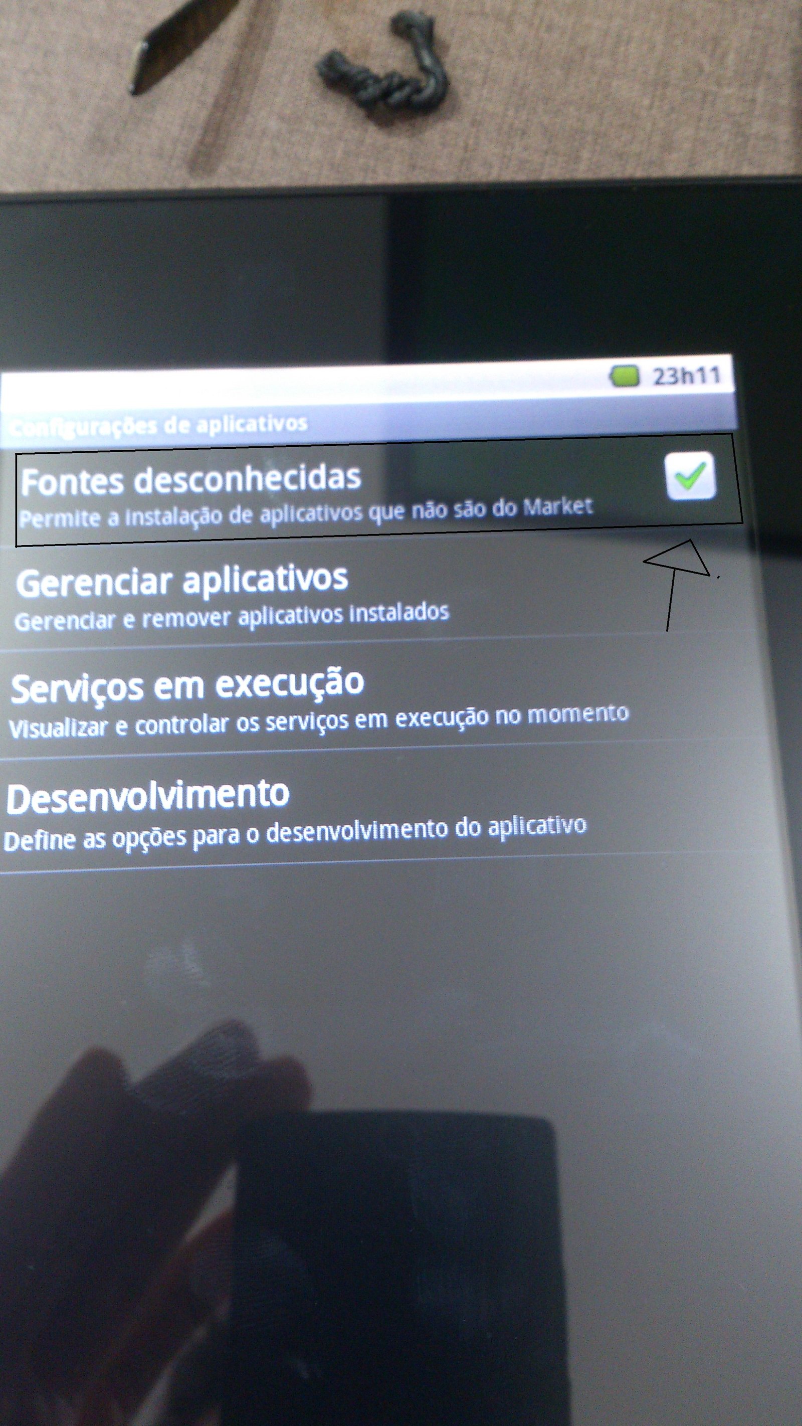 5- Dentro de Aplicativos deixe como habilitado a função Fontes Desconhecidas, como na imagem abaixo