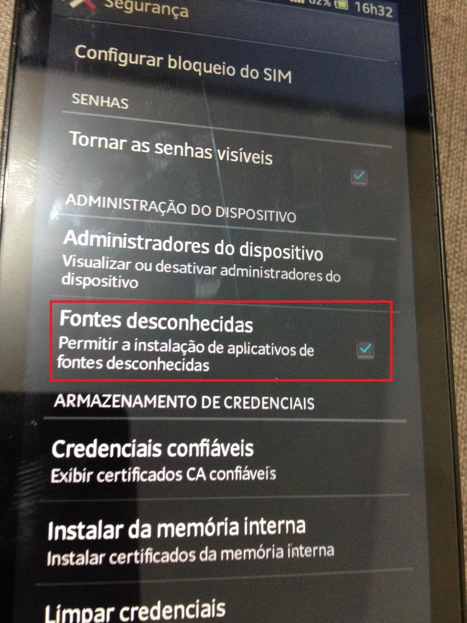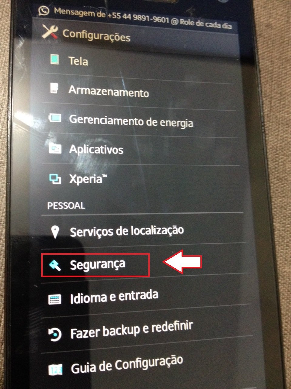 Obs. Em alguns aparelhos esta configuração estará dentro da Opção Segurança, conforme a imagem abaixo