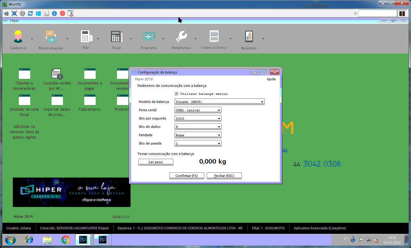 Configurar Balança ChecKout Hiper Home » Manuais » Configurar Balança ChecKout Hiper 7 de outubro de 2016 Luan David Manuais Nenhum comentário SEGUE FOTO DA CONFIGURAÇÃO DA BALANÇA DO MERCADO LAGUNA. Abrir a configuração e colocar as configurações da balança conforme o modelo da foto… importante a se reparar é se a velocidade da portar esta na mesma velocidade da balança…